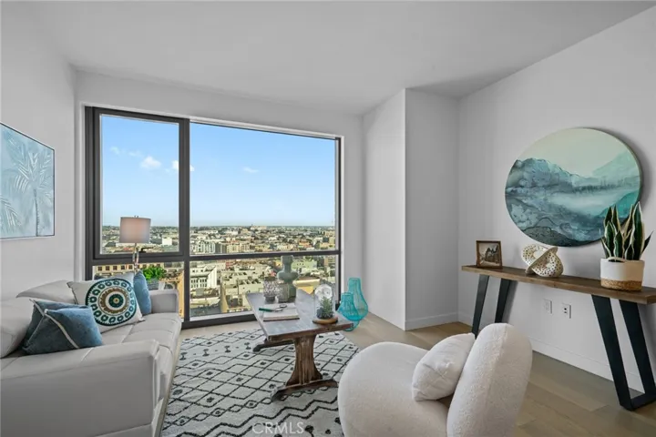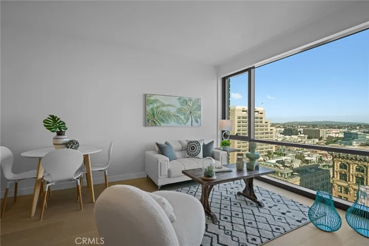 Welcome to this magnificent end unit located at the 21th floor of brand new PERLA luxury condo in the heart of DTLA. The PERLA building was designed to allow its residents enjoy life more easily. Located conveniently close to all the dinning, shopping and entertainment including the Grand Central Market and Disney Hall. Upon entering the lobby area, you and your guest will be greeted with 24 hour receptionist while your eyes explore the spacious waiting area with comfortable European style setting & furnishings. The amazing luxury amenities include rooftop terrace with 360 degree views, fitness center, private theater, private dining room, wine tasting room, entertainment room, outdoor BBQ, outdoor swimming pool, hot tub, Dog Park, pet spa, and outdoor BBQ areas. This unit features approx. 903 sqft of open living spaces with large living area overlooking the downtown skyline, large bedroom with walk-in closet, full bathroom, open kitchen & dining area with stone counter-top and brand new appliances. Motivated Seller!! Must come to appreciate!