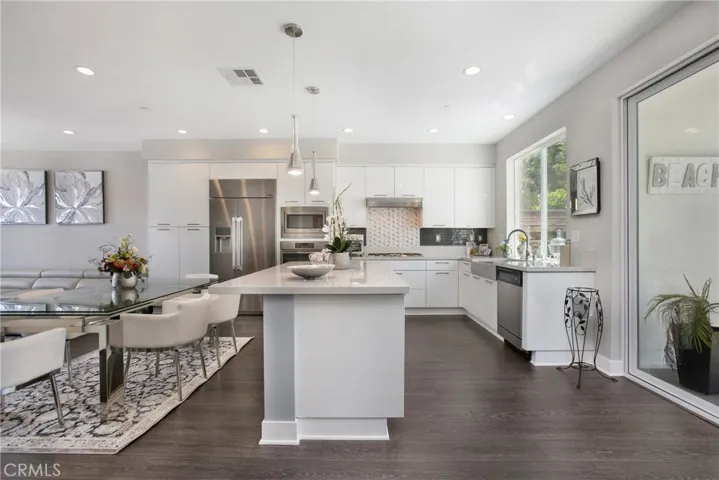 Welcome to this highly desirable community of Westreef in Costa Mesa. This single family home features a blend of contemporary design and luxurious amenities. There are 3 bedrooms (all upstairs) 2 bathrooms and 2 half bathrooms. This home is the epitome of comfortable and stylish living. The first floor has high ceilings that create an airy and inviting ambiance. The heart of the home is the chef’s kitchen, with stainless steel appliances which includes a Dacor refrigerator. The kitchen has quartz countertops, stone backsplash and white cabinets. Step outside on the back patio you’ll find a cozy custom fireplace with nicely maintained landscaping. In the garage you’ll find eco-friendly home that comes with a Tesla charging station, fully paid solar panels, a tankless water heater, air conditioning and dual pane windows. There is an office and laundry room in the garage which holds two cars.