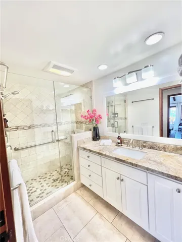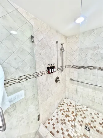 Walk-in tiled showers with custom glass