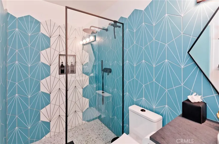 The showstopper? The attached private casita — a luxurious retreat with its own fully outfitted kitchen (quartzite counters + vintage-style appliances), a light-filled living room, and a primary bath dripping in Hollywood glamour — complete with a freestanding pedestal tub and an oversized spa-like shower.
