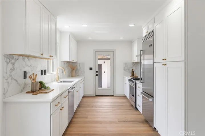 Within walking distance of Alexander Hamilton High School and the Norman J. Pattiz Concert Hall, the home features 3 bedrooms, 2 bathrooms, and an open-concept living and dining area—both inviting and functional. The renovated kitchen and bathrooms showcase stylish finishes and practical design, complete with a Viking refrigerator and other premium appliances for the discerning cook. Major upgrades include a new roof, new windows, a new water heater, and an automatic driveway gate. Additional features include a private 2-car garage and a newly landscaped private yard, perfect for relaxing or entertaining.