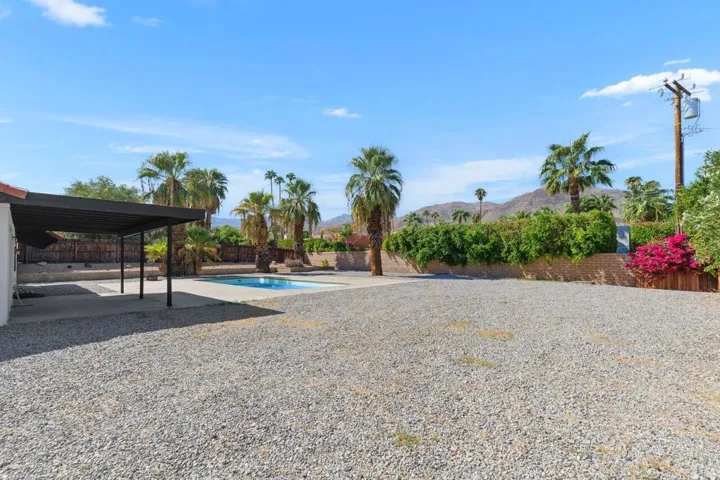 Large Back Yard to add Casita or ADU. Potential short term rental income. Nestled against the breathtaking backdrop of the Santa Rosa Mountains, this newly remodeled home offers the perfect blend of modern luxury and desert charm. Just a short stroll from the renowned El Paseo shopping, dining, and entertainment district, this 3-bedroom, 2-bathroom pool home is an oasis. As you enter, you’re greeted by a spacious open living and dining area featuring a cozy fireplace, ideal for gatherings or quiet evenings .The upgraded kitchen boasts designer cabinetry, appliances, and fixtures. The thoughtfully designed layout ensures that the three bedrooms are nicely separated from the main living areas, providing a tranquil retreat.The primary bedroom is complete with an ensuite bathroom showcasing a sleek glass shower enclosure and views of the expansive pool and backyard lined with stunning palm trees. The generous outdoor space is a blank canvas, ready for your personal touch–perfect for entertaining or enjoying the serene desert landscape. Plus, there’s ample space for RV parking! Palm Desert is renowned for its vibrant amenities, including the McCallum Theater, the Living Desert Zoo, Acrisure Arena, and the International Food & Wine Festivals. Golf enthusiasts will appreciate the nearby Desert Willow Municipal Golf Course, which offers exclusive discounted rates for residents.Don’t miss your chance to own a piece of paradise. Call Gina today for your private tour!
