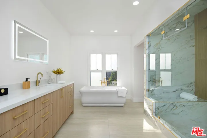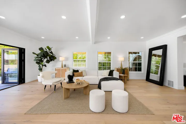 Romantic old-world charm meets modern luxury in this reimagined English Tudor, perfectly situated within Windsor Village HPOZ of Hancock Park. Behind manicured grounds and a majestic pine, the renovated interior unfolds with wide-plank oak floors, airy open-concept living spaces, and a statement staircase framed in black iron. The chef’s kitchen features premium stainless steel Thermador appliances, while brand-new Panorama sliding doors connect the indoors to a true entertainers backyard with a covered patio, built-in BBQ, sink, fridge, and storage. Recent updates include new plumbing, electrical, ductwork, dual AC units, roof, paint, and paid for solar panels. The garage is recently finished with new doors, epoxy floors. The spa-inspired primary bath boasts a freestanding tub, porcelain shower with gold trim, and abundant natural light. Additional highlights include a wine cellar, decorative fireplaces, and an option for a sixth bedroom making this historic-meets-modern gem truly turn-key.