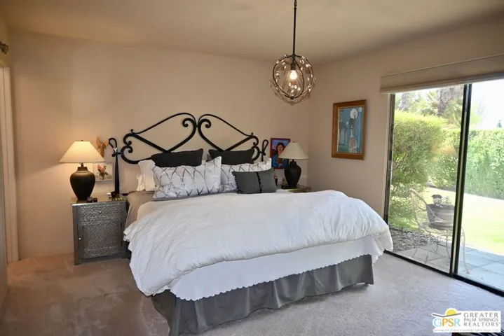 Best deal on a 2 bedroom condo in Palm Springs. HOA includes earthquake insurance, full roof coverage, water, landscaping, pools and gate, plus cable TV. If you are looking to buy in Palm Springs, this is the deal. This beautiful condo location is perfect, being a short distance to Mizell Community Center, Sunrise Park, and two shopping plazas. On the NW corner is Ralphs, CVS and is home to many restaurants; Joyces Sushi and Panda Express are here. SW corner has a Natures RX, Aspen Mills Bakery, Monsoon, and Nina’s Greek restaurant. A quick drive or bike to downtown. Come by to give it a look and make an offer. All offers will receive a response. Wood look flooring throughout public spaces. Soft, plush carpet in both bedrooms. Living room features high vaulted ceilings, a sparkly glass chandelier, a fireplace worthy of the term focal point. A large window for natural light with window covering. Dining room has a sightline to the living room, dining bar and kitchen with direct access to the one car garage. Kitchen is topped with a warm golden granite, refrigerator, cooking range, microwave and dishwasher included. Take your meals and beverages outside through the kitchens sliding glass door to the shaded, private, covered patio surrounded by foliage, and possible fenced area for your friendly pets. The generously sized primary bedroom, with walk in closet, exterior access to community pool just steps away. Primary bath features a dual sink vanity, shower over tub has mirrored glass to reflect light and greenery from the outside access to the private patio. Bedroom two provides built in storage shelves for all your books and mementos, a tall window with covering for natural light and privacy control. Bath two is tiled in a classic black and white pattern in the step-in shower. Upgraded air and water heater. Sunshine Villas has installed all new efficient desert landscaping on the streetside of the community! It looks good now, it will be gorgeous when matured. Greenspace grass will remain in walkways and pool areas. The new look coordinates beautifully with this Hugh Kaptur design community. Come and experience this ready to move in and enjoy 2 bed 2 bath home.