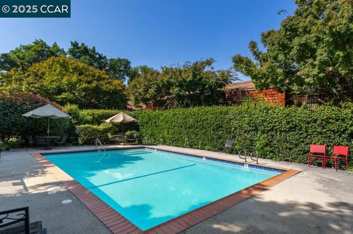 Open House 12/28 SUN 1-4pm. A special place to call home. End unit on ground floor with private front courtyard. Only a small step entry, naturally cool & shaded by a canopy of trees. Great layout with 2 bedrooms, 1.25 baths with sink in primary bedroom with french door to enclosed and private rear patio. 2nd bedrooms with sliding glass patio door. This home boasts an excellent floor plan featuring a spacious living room with cherrywood floors a cozy fireplace, a welcoming entry, and a dining area with ceiling fan & light all open to the kitchen. The kitchen is enhanced by quartz counters, light -colored cabinets with ample storage and pantry. The community offers serene, mature landscaping and a refreshing swimming pool. Coveted private access to Newhall Community Park.