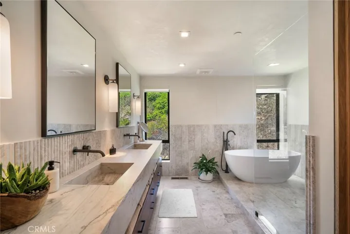 The primary suite is a true sanctuary, featuring a private terrace with tranquil views, a spa-inspired bath, and a personal wet bar with Sub-Zero refrigerator. Thoughtful upgrades include solar panels, energy-efficient windows and doors, and an upgraded HVAC system for year-round comfort.