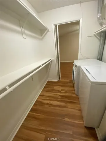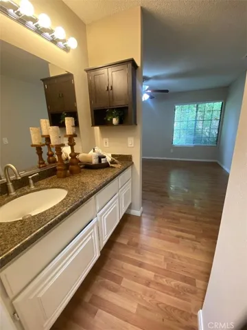 This unusual single story 2 bedroom and 2 full bathroom unit is a charmer. It has the unusual feature of having its own washer and dryer hook ups located in master closet, so the HOA laundry facility is not required, but it is still available. Air conditioner and water heater fairly recently replaced. Quiet community with tall trees. HOA has a community pool and jacuzzi. This unit has a one car garage as well. The unit has a birds eye view of the community below. The views and feel of the community are very desirable and peaceful. New carpet to be installed on October 8. Interior has been painted and also has new blinds.