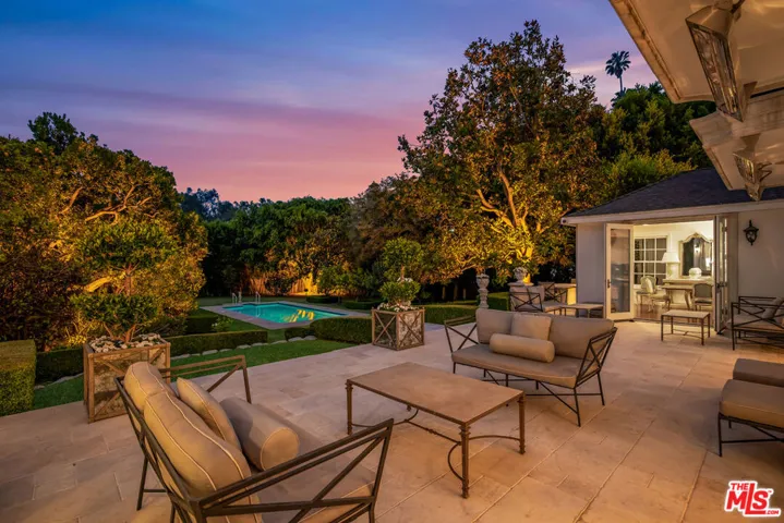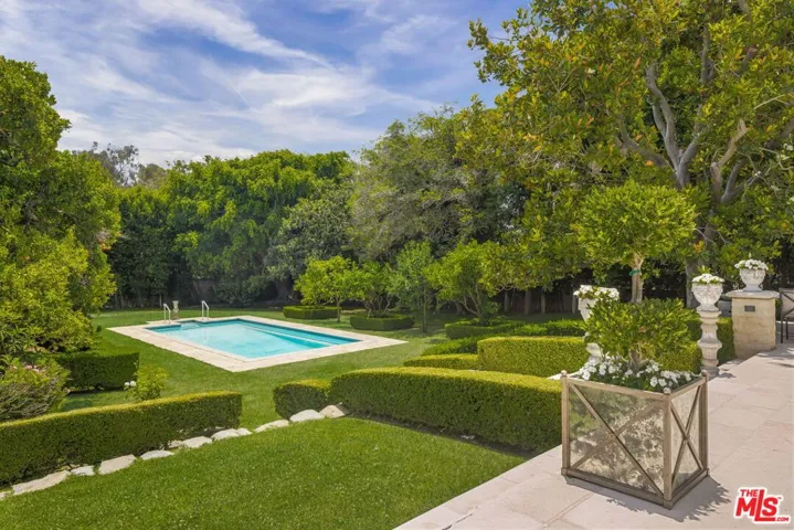 Hidden behind gates in one of Bel-Air’s most coveted pockets, this elegant, traditional estate sits on nearly half an acre of beautifully landscaped grounds. Designed for privacy and timeless appeal, the home offers a classic two-story layout with natural light, refined finishes, and effortless indoor-outdoor flow throughout. The main level features a series of warm, welcoming living spaces including a formal dining room, multiple sitting areas, and a spacious kitchen outfitted with top-tier appliances and a sunlit breakfast nook. French doors open to a lush backyard with a resort-style pool, grassy lawn, and multiple terraces for outdoor entertaining. Upstairs, the private quarters include two guest bedrooms and a generous primary suite with a balcony, walk-in closets, and a serene, spa-like bath. A second-floor den or lounge adds flexibility for media, play, or office use. Offering quiet sophistication in a prime Lower Bel-Air location, 10914 Bellagio is the pinnacle of Southern California luxury.