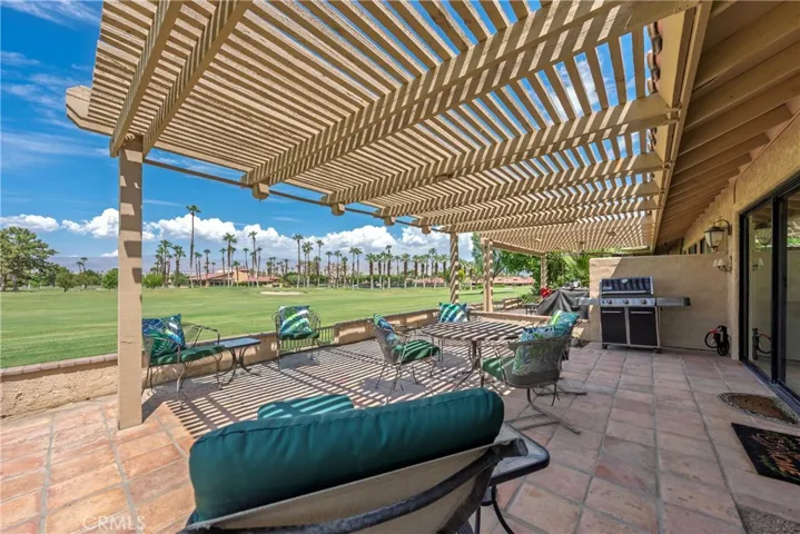 Discover this beautifully upgraded single-story end unit home with lots of privacy on the 7th fairway. Enjoy the view of the golf course and mountains as you relax on the huge north facing patio which includes a 10-piece patio set with brand new cushions. The included BBQ has a direct gas line – so no more propane tanks! Step inside to an open concept design featuring new Shaker style kitchen cabinets, and quartz countertops which seamlessly flow into the dining space. The wide plank luxury vinyl flooring adds warmth and durability, complemented by fresh paint, new recessed lighting in the kitchen, and an inviting quartz surround fireplace with a new mantle.
