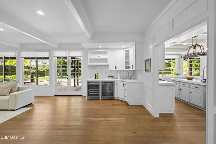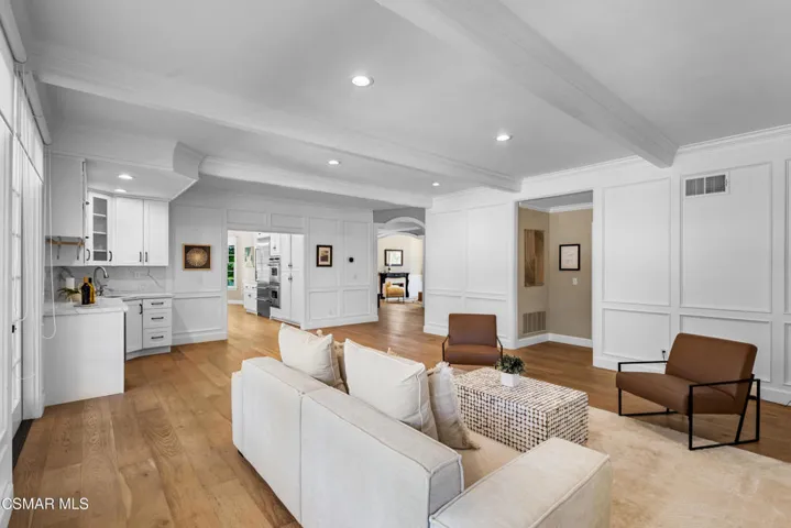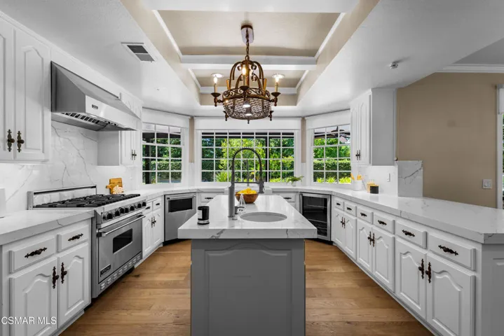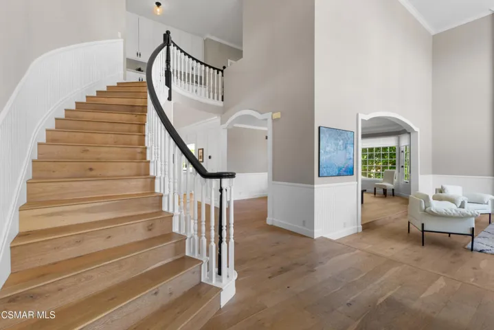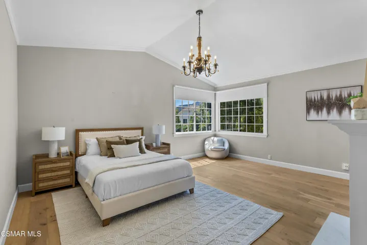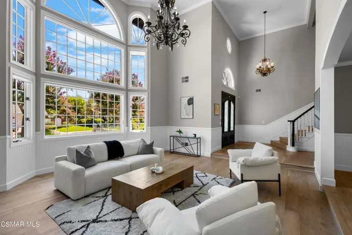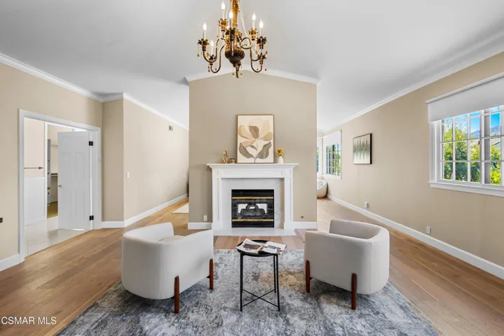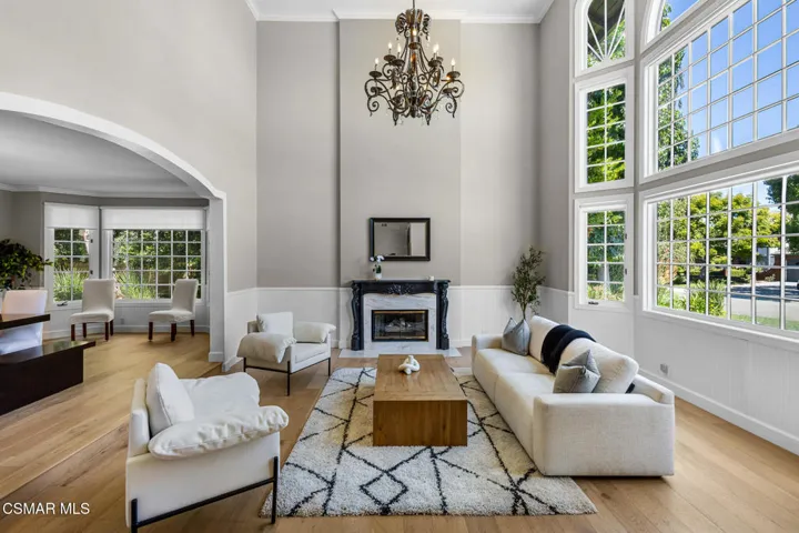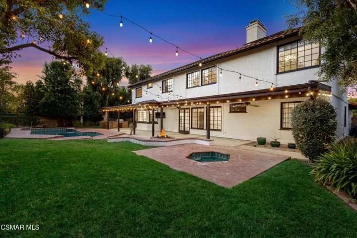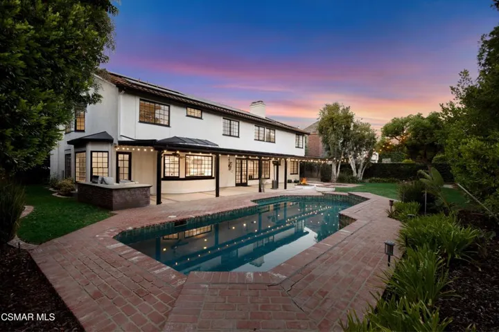 Welcome to 29340 Castlehill Drive, where elegance meets enchantment in the prestigious Morrison Highlands. This breathtaking 5-bedroom, 5-bathroom estate spans nearly 5,000 square feet of open living space bathed in natural light and has been beautifully reimagined with attention to every detail.Step inside to soaring ceilings and a graceful flow that draws you into the heart of the home. The formal living room, filled with sunshine, opens to a sophisticated dining room, ideal for hosting both lively gatherings and intimate dinners. Just beyond, the family room offers warmth and comfort with its inviting fireplace, custom built-ins, and wet bar, while walls of windows frame views of the backyard.The kitchen is a showpiece for any cook, with professional-grade Viking appliances, a Franke farmhouse sink, striking Calacatta Laza quartz counters, and generous workspace. A casual dining area and seamless connection to the family room make it the perfect everyday hub. On this level, you will also find two private en-suite bedrooms, each with tastefully remodeled baths, ideal for guests or multi-generational living.Upstairs, a light-filled family lounge welcomes you with a dry bar, beverage center, and ample storage, a perfect space for game nights, weekend movies, or simply unwinding with good company. Two large secondary bedrooms are served by a beautifully updated bath, while the primary suite offers an indulgent retreat. A separate sitting room with a double-sided fireplace creates a cozy escape or private workspace, and two spacious walk-in closets lead to a luxurious spa-like bathroom.Through charming French doors, the backyard feels like your own private resort. Set on a third of an acre, this personal haven features a sparkling pool and spa surrounded by generous lawn space and room to play. The built-in BBQ, covered patio, and multiple sitting areas make it easy to entertain or simply enjoy a quiet afternoon outdoors.Throughout the home, you will find thoughtful custom touches, from chair rail and refined moldings to designer fixtures that add character and warmth. Recent updates include new hardwood floors, custom window treatments, designer light fixtures, a tankless water heater, newer HVAC units, pool heater, and filter, along with remote-controlled shades, smart dimmers, and LED lighting.Located in one of Agoura Hills’ most desirable neighborhoods, this home offers not just beauty but also convenience, with close proximity to award-winning schools, charming dining, scenic hiking trails, and the Pacific Ocean.