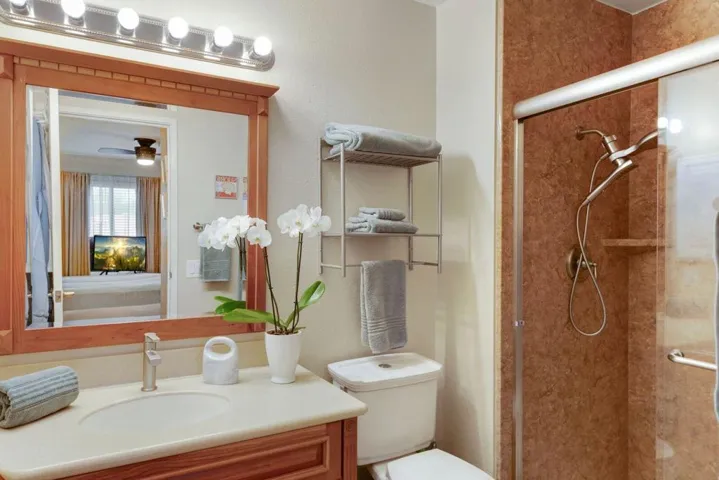 Looking for a fully renovated condo complete with newer Andersen Windows and slider, newer HVAC system & water heater, and updated kitchen and bathrooms this is the one! Second floor unit with amazing south and western mountain views and tranquil pond from your private balcony. The living room has a custom updated cozy fireplace. Every room offers a completely different view with custom blinds and drapery. This unit also includes full size washer and dryer for convenience and assigned covered parking in front of the complex. The low HOA fee of $400 covers all grounds, exterior, roofs two pools and spas, volleyball courts, a fitness center along with a club house. This home is mostly furnished with few exceptions so you can enjoy on the very day you close escrow. Perfect for a full-time resident or seasonal long term rental with shopping, dining, and entertainment on El Paseo. Palm Lake is guard gated from 8am to 4pm with security code entry for your security. Come check this one out!