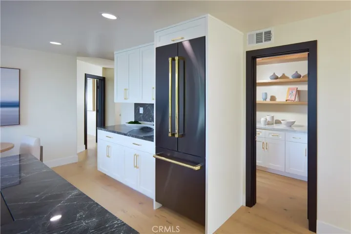 Showcasing a completely reimagined interior, this light-filled residence is highlighted by priceless golf course, mountain, and city-light views from its elevated corner-lot position in Newport Beach’s exclusive guard-gated community of Big Canyon. Set on a peaceful cul-de-sac, the light and bright floorpan unfolds over approximately 4,083 square feet, boasting a functional design that seamlessly blends luxury with comfort. A double door entry opens onto a grand foyer where new, sleek wood floors and a dazzling crystal chandelier set an immediate tone of sophistication. Pampering chefs, the gourmet kitchen showcases exquisite countertops, custom cabinetry, high-performance Zline appliances, and a spacious walk-in pantry.
