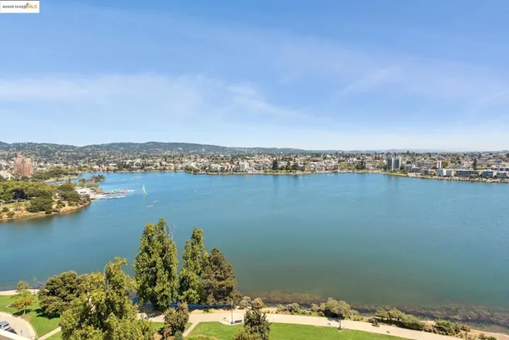 Experience one of Oakland’s premier addresses at the Lakeside Regency, a 1968 mid-century modern landmark designed by Michael Marx, AIA—an apprentice of Frank Lloyd Wright. This 19th-floor unit has stunning lake views and spans 1,300+ square feet. A wall of floor-to-ceiling windows draws you to the expansive front balcony with sweeping views of the Oakland skyline. The generous dining area flows easily from the living room, while both bedrooms, including an ensuite, offer a peaceful retreat. Both bathrooms have been tastefully updated. Enjoy the rare convenience of in-unit laundry. Additional upgrades include Hunter Douglas motorized blinds, pendant lighting, and carpet tile. Building amenities include 24-hour door service, a shared mezzanine, rooftop deck, and clubhouse. Deeded parking and private storage closet included. Pets welcome. Views: Downtown