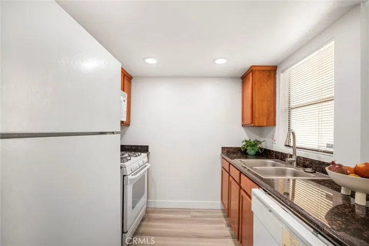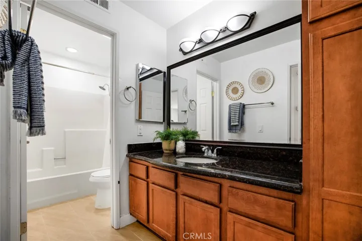This stylish upstairs unit has been refreshed with new vinyl flooring, bathroom updates, recessed lighting, upgraded balcony features, fresh paint, and a brand-new AC unit, making it an easy low-maintenance investment property or move-in ready for a homeowner. Inside, you’ll find a spacious bedroom with double mirrored closets, a large bathroom with plenty of counter space and storage, and a private balcony perfect for relaxing or entertaining. The kitchen features granite countertops and comes fully equipped with a stove, microwave, dishwasher, and refrigerator. A one-car detached garage is included, with plenty of street parking for guests. The community offers fantastic amenities: sparkling swimming pool, relaxing jacuzzi, BBQ and picnic areas, onsite laundry, well-kept grounds, and pet-friendly living. HOA dues cover water, trash, sewer, and grounds maintenance for stress-free ownership. With its unbeatable location near campus, shopping, restaurants, and freeways — plus outdoor destinations like the Cleveland National Forest, Santa Ana River, and Sycamore Canyon Wilderness Park — this property offers strong rental potential and consistent demand. Whether you’re looking for a prime rental property or your own place to call home, this one is ready to go… and units here don’t last long!