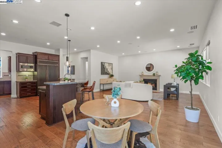 An exceptional Treviso residence, enviably positioned in one of the area’s most sought-after enclaves, presenting a masterfully designed arrangement of 5 beds and 4.5 baths. Extending to approx. 3,972 sq. ft., this distinguished home offers a wealth of refined interiors, from rich hardwood floors and bespoke motorized window dressings to a freshly curated color palette and a discreetly integrated outdoor sound system. The culinary domain is a triumph of form and function, with a grand wraparound island, premium stainless steel appliances, and a concealed Sub-Zero refrigerator, creating an effortless flow for both intimate gatherings and larger soirées. The principal suite is a sanctuary of calm, with an expansive frameless shower, twin basins set within a generous vanity, and a deep drop-in tub for indulgent repose. The formal reception room, with its lofty ceilings, imparts a sense of grandeur, complemented by an elegant dining hall and a meticulously landscaped garden. Here, one finds a fully appointed outdoor kitchen designed for the most discerning host. A substantial guest suite occupies the ground floor, whilst a dedicated study ensures privacy and productivity for those working from home. Perfectly situated for acclaimed Mission schools & major thoroughfares (680/880)+BART