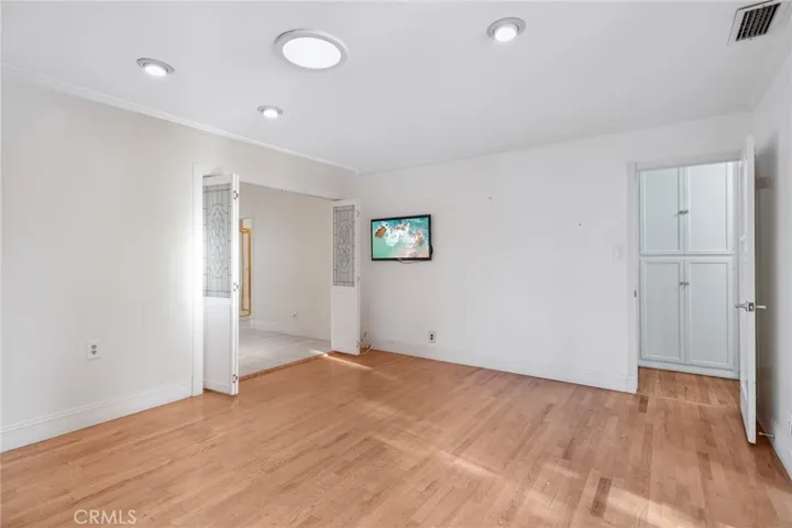 The detached garage sits on a sturdy slab and opens to Kittridge through a large iron security gate, offering flexibility for an ADU, SB9 lot split, or private compound. The grounds are dotted with mature fruit trees, including black and white figs, blood oranges, oranges, and lemons, adding to the property’s character.