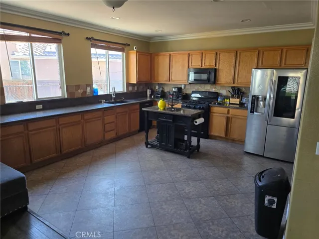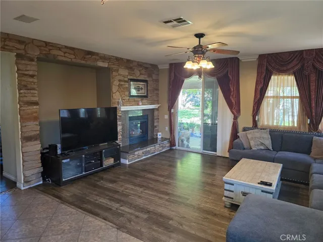 Welcome to 130 Azurite, a spacious and versatile two-story home nestled at the end of a peaceful cul-de-sac in a quiet Perris neighborhood. This stunning 5-bedroom, 3-bathroom residence offers over 2,700 sq ft of living space, thoughtfully designed to accommodate a variety of lifestyles. Enjoy the convenience of a full bedroom and bathroom on the main floor—perfect for guests, in-laws, or a private home office. Newly remodeled upstairs bathroom. The home features a desirable 3-car garage, providing ample storage and parking. Energy efficiency is a plus with a transferable solar lease, helping reduce monthly utility costs. Step outside to a massive backyard on a generous 19,000+ sq ft lot, ideal for entertaining, gardening, or creating your dream outdoor retreat with a pond and above ground spa.