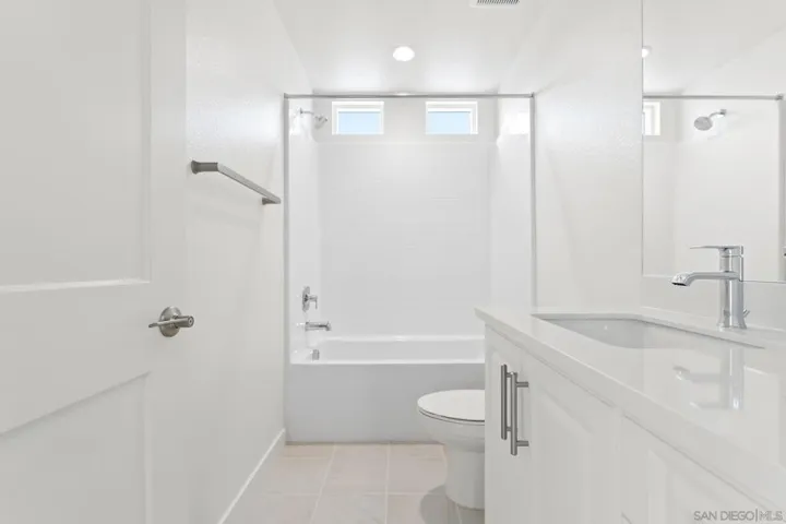 This brand-new, end-unit Energy Star certified townhome offers the perfect blend of style, comfort, and coastal convenience. The flex space on the entry level is ideal for a home office, gym, or creative studio, while the enclosed front patio with sliding glass doors sets the stage for true indoor-outdoor living. On the main living level, 9 ft. ceilings and an open-concept design create a light, airy feel. The chef’s kitchen features a spacious island, white Thermofoil cabinets, quartz countertops, stainless steel appliances, and a walk-in pantry with window. On the top floor, you’ll find three bedrooms and two full bathrooms, including a comfortable primary suite. The attached two-car side-by-side garage offers plenty of storage, and the owned 2.8kW solar system keeps energy costs low. Located within the highly rated Carlsbad Unified School District, Coral Ridge puts you just minutes from Carlsbad Village, award-winning beaches, shopping, dining, and easy freeway access. Skip the hassle of updating an older home…this is your rare chance to own brand-new construction on the coast!