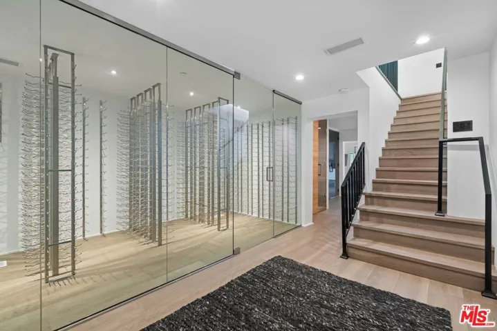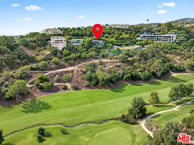 Located in one of the most scenic perches of Bel Air, nestled high above the prestigious Bel Air Country Club golf course, this four-bedroom, four-bathroom, three-level residence boasts premium finishes, magnificent views, and exceptional natural light. The main level features an expansive open-concept layout, seamlessly connecting the living, dining, and kitchen areas, all strategically positioned to maximize breathtaking views of the Bel Air hills, the Los Angeles skyline, and the pristinely manicured golf course. The kitchen, centered around a striking waterfall-edged island, stands as the heart of culinary sophistication, with modern design, luxe finishes, premium appliances, abundant natural light, and an exceptionally large walk-in pantryan ideal setting for hosting and entertaining. The second level is home to the primary suite, complete with a generously appointed walk-in closet and a spa-inspired bathroom featuring a free-standing tub, dual shower heads, panoramic views framed by an oversized window, and an adjoining outdoor terrace that creates a serene ambiance. Three additional bedrooms, each with its own en-suite bathroom, provide ample comfort for family or guests. The lowest level offers a grand wine cellar, a sauna, and a versatile fourth bedroom currently used as a recreation/game room. Expansive wraparound glass balconies further enhance the experience, seamlessly connecting the interior spaces to the awe-inspiring natural surroundings.