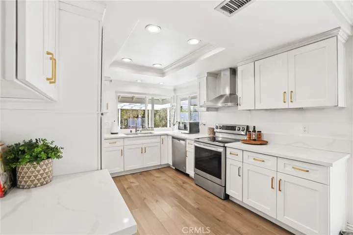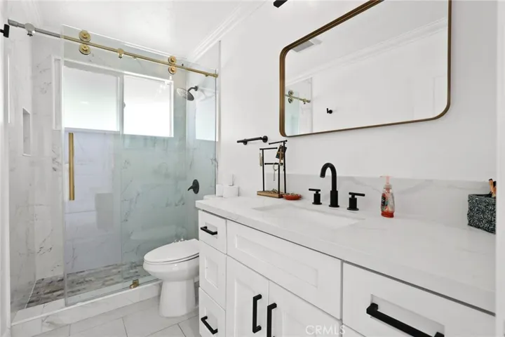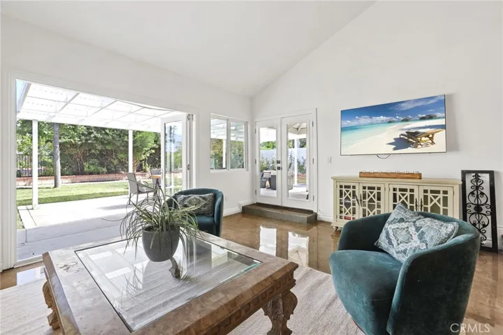 Stylish Single-Level Living with Modern Updates and Great Indoor-Outdoor Flow. Welcome to 463 S Westridge Circle, a beautifully updated single-level home in the desirable Westridge community of Anaheim Hills, designed for natural light, open flow, and modern comfort. Spanning approximately 1,923 sq ft, it offers three spacious bedrooms and three full bathrooms on a 9,477-sq-ft rectangular lot with hillside and city-light views, providing privacy and usable outdoor space. The foyer opens to a stunning backyard view through folding glass doors. To the right, the family room with fireplace flows seamlessly to the breakfast nook, while the open kitchen features marble-look counters, stainless steel appliances, and a stylish backsplash. A side patio door off the kitchen and the dining area connecting to the living room with two gentle steps, sleek gold-tone railings, and stained concrete epoxy floor enhance indoor-outdoor living. The primary suite offers large windows, a remodeled bath with dual sinks, walk-in shower, and sauna. All bathrooms have walk-in showers. The private backyard has mature landscaping, grassy areas, a large, covered patio, and a gazebo. Updates include removal of a half wall for openness, folding patio doors, recessed lighting, remodeled bathrooms, vinyl plank flooring (now carpet in bedrooms/hall), sauna, stained concrete epoxy living room floor, new carpet, side yard doors, upgraded hardware and locks, smoke detectors, and newer dual-pane vinyl windows. On a quiet interior street, this rare single-level home has a low HOA with pool and tennis courts and is close to top-rated schools, parks, shopping, dining, and freeway access.