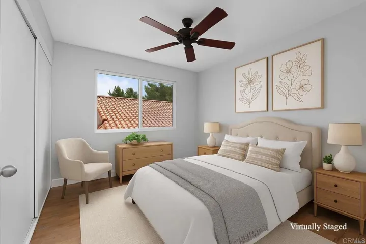Price Improvement! Move in ready home in the wonderful community of Tuscany at Shadowridge. Home has 4 bedrooms, 2.5 bathrooms and over 2200 sqft. Home features vaulted ceilings in the living room with upgraded flooring. The beautiful kitchen has updated appliances, granite counter tops, kitchen island and eat in kitchen over looking the backyard. Updated windows have shutters throughout downstairs. Spacious primary suite features vaulted ceilings, with walk in closet, double sink and seperate tub and shower. Savor your morning coffee on your extended private balcony or enjoy evening drinks while watching the gorgeous sunsets. Easy to maintain private backyard (no rear neighbors) gives you more time to relax and soak in the sun. This flexible floorplan gives you plenty of options to create your best life. Must see to truly appreciate. Did I mention this home has solar? Tuscany Community has community pool, spa and low hoa dues ($160). Great location close to parks, shopping and Shadowridge Golf Course.