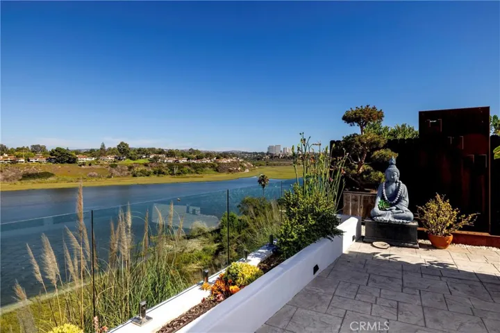 A refreshing and modern reimagination, complementing this well-scaled collection of sophisticated spaces. Set on a verdant bluff above the scenic Back Bay, this light and airy home has been beautifully appointed to delightfully articulate architectural detail and accommodating living areas. Enveloped by the tranquil estuary and captivating water, city lights, and mountain views, the property creates an exceptional opportunity to experience this idyllic and sought-after location. The configuration of the over 10,000-square-foot property, affording a fluid continuum from interior to exterior areas, is a harmonious environment to comfortably reside, entertain, work, and enjoy an atmosphere of relaxed elegance. The interior encompasses five bedrooms; five and one-half baths; a statement kitchen with a coffee bar and breakfast niche; formal living and dining rooms; a games/billiards room; a bar and lounge; a subterranean, temperature-controlled wine cave with capacity for 800+ bottles; and a fully finished garage/auto salon. The exterior surround is graciously connected through a series of new, collapsing and sliding walls of glass. The secluded interior courtyard with a sparkling salt-water pool and spa with a Baja shelf; and a panoramic view terrace with built-in kitchen and barbeque elements; along with fire feature/conversation seating, and both sunny and shaded space for repose and recreation – offer a multitude of independent areas to enjoy an outdoor lifestyle. Every detail was considered in refining the stylish domain – just a small selection of thoughtful finishes and amenities includes an abundance of rare natural stones and hardwoods as well as imported, resilient engineered materials; an impressive selection of artisan-crafted and designer furnishings including lighting, wall treatments, intricated finish applications, fixtures and fittings; a custom LAM Woodworks kitchen with appliances from Wolf, Sub-Zero, and Cove; radiant heated floors in all-ensuite baths with spa-like components; a an exquisite primary suite with private wardrobe and lavish bath; and myriad technological advancements for security, audio/visual, home automation, and efficiency. Resplendent with offerings, residents of this idyllic community enjoy the benefits of three private beaches, recreation, sports courts, and ideal proximity to regional resources.
