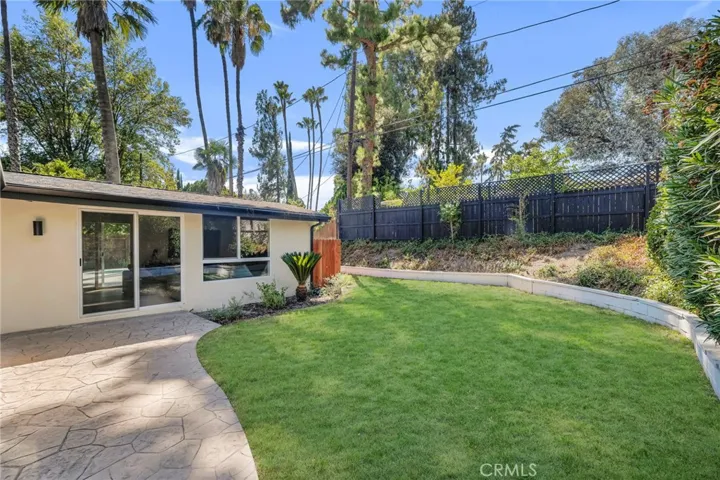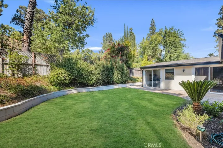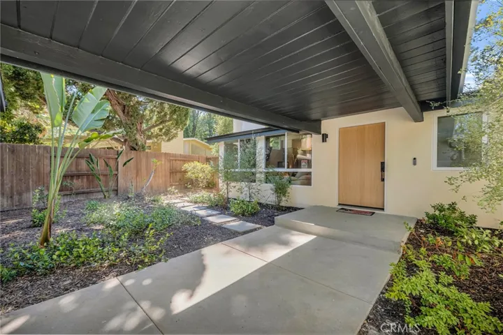 Experience the perfect blend of style and comfort in this beautifully reimagined mid-century modern single-story pool home, ideally situated south of the boulevard in a beautiful sought-after Woodland Hills neighborhood. Originally renovated about three years ago (2023) with high-end finishes and thoughtful design, the home has been lovingly maintained to preserve its like-new feel. Step through a lush, private courtyard into a light-filled living space with soaring beam ceilings and courtyard views. The open-concept great room features European engineered wood floors, an updated fireplace, and a dining area ideal for gatherings. The chef’s kitchen boasts Viking stainless steel appliances, a generous center island with seating, custom flat-panel cabinetry, quartz counters, and a full-height tile backsplash.