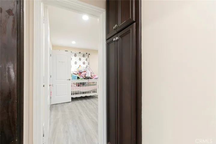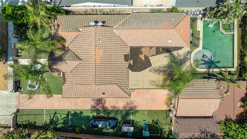 Privately gated with a spacious driveway that accommodates multiple vehicles, this property boasts gorgeous curb appeal with Spanish tile roofing, modern dual-pane windows, a custom front door, security cameras, and mature palm trees that frame the entrance.