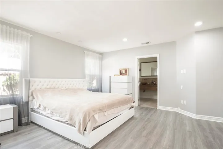 The modern kitchen features sleek cabinetry and quartz countertops, perfect for both everyday living and entertaining.