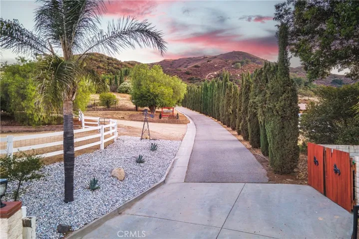 A fully remodeled luxury estate with instant equity! Offered below recent appraisal as the owners relocate out of state, this rare opportunity combines high-end improvements, income potential, and the glam farm lifestyle in one of Southern California’s most prestigious equestrian enclaves. Set on ~4 gated acres in the Santa Rosa Plateau foothills, this gated hilltop property offers panoramic views across four counties with unmatched convenience just 2 minutes from I-15, shopping, and dining. Every inch of this property has been thoughtfully renovated, fully modernized, and professionally styled to reflect a seamless fusion of modern farmhouse design with European country estate aesthetics. Known as a thriving mini-Highland cow attraction, the property features high-end livestock infrastructure, botanical grounds, a pool sanctuary, and sweeping city-to-mountain views from Los Angeles to San Diego. This established agritourism draw offers turn-key income potential with no HOA, no CC & Rs! Interior highlights include nearly 4,400 SF with 5 spacious bedrooms, 4+ bathrooms, dual primary suites, an entertainer’s lounge with a wine fridge, a panorama room to soak in the views, and an artist’s loft/office. The chef’s kitchen features natural quartz Calacatta countertops, dual dishwashers, dual ovens, a butler’s pantry, and seamless access to indoor and outdoor dining areas. A 450-foot cypress-lined driveway leads to resort-style amenities: a large pool with hot tub, shaded cabanas, outdoor bar, hot shower, several terrasses, manicured gardens with fountain, and multiple curated spaces designed for refined entertaining beneath mature trees. Equestrian and boutique livestock facilities include a commercially lighted dressage court, 246-foot arena, tack room with restroom, 2 mare motels, and thoughtfully designed enclosures. Additional highlights include an 11.2kW solar system, 20+ paved guest parking spots, and every surface fully renovated—making this estate move-in ready for those seeking privacy, prestige, and profit in one of California’s last hidden gems. Adjacent to the prestigious communities of La Cresta and Bear Creek Golf Club, this property is set within the sought-after Santa Rosa Addition and benefits from exclusive Wildomar R-R (Rural Residential) zoning—allowing a wide range of permitted uses, including livestock husbandry, nurseries, orchards, guest ranch operations, and a permanent farm stand (buyer to verify).