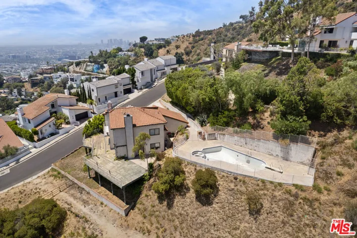 An Unmatched Opportunity to Create a Legacy Estate with Sweeping Iconic Views in the Hollywood Hills. Perched atop one of the most coveted private promontories in Los Angeles, this extraordinary 1.2-acre offering comprised of three oversized, contiguous parcels presents a truly once-in-a-generation opportunity in the heart of the Hollywood Hills. Boasting over 233 feet of street frontage and uninterrupted jetliner views stretching from Downtown Los Angeles to Catalina Island and the Pacific Ocean, this property delivers a rare combination of scale, privacy, and world-class vistas. The site is currently an expansive single-story mid-century residence offering approximately 2950 square feet of living space. Walls of glass frame breathtaking views from nearly every room, while generous interiors, a large motor court, and a resort-style pool and spa provide immediate livability and timeless architectural appeal. Whether, reimagined, or expanded, the existing home offers exceptional bones and serves as an ideal foundation for a remarkable transformation. For developers and visionaries alike, the potential is extraordinary. New construction possibilities exceed 15,000 square feet, with a rare flat pad, gentle slope, and expansive lot dimensions allowing for endless configurations ranging from a singular architectural masterpiece to a multi-structure compound complete with guest residences, entertainment pavilion, wellness retreat, and more. The wide, sidewalk-lined street is fully paved and features underground power lines, ensuring unobstructed skyline views for generations to come. Within the ultra-exclusive 90069 zip code, only 25 properties offer lots of this magnitude and none combine this level of frontage, infrastructure, privacy, and panoramic exposure. With neighboring estates already rebuilt or extensively renovated, long-term value is firmly established, positioning this property as the undeniable crown jewel of the block. Just moments above the Sunset Strip yet worlds away from the energy below, this offering is more than land it’s an opportunity to create an architectural legacy. Whether restoring mid-century elegance or crafting a bold new statement, the canvas is limitless, and the views are simply unforgettable.