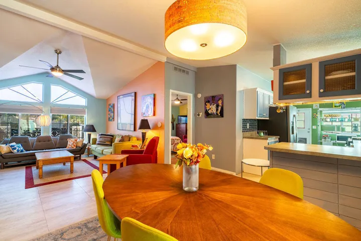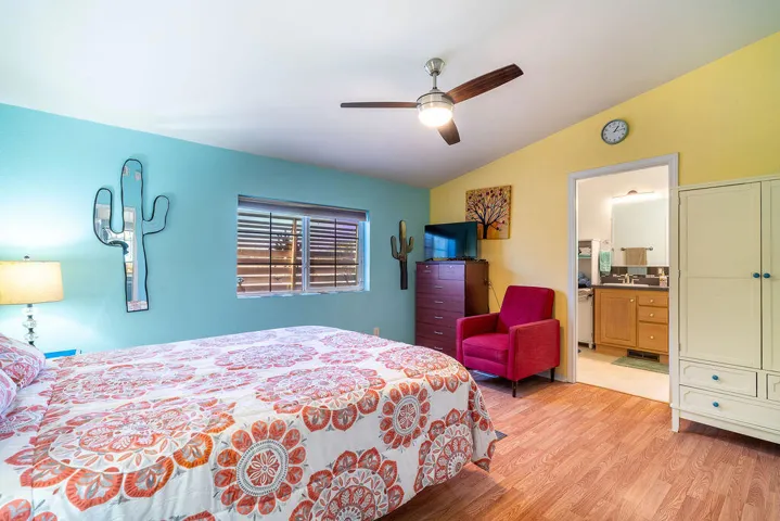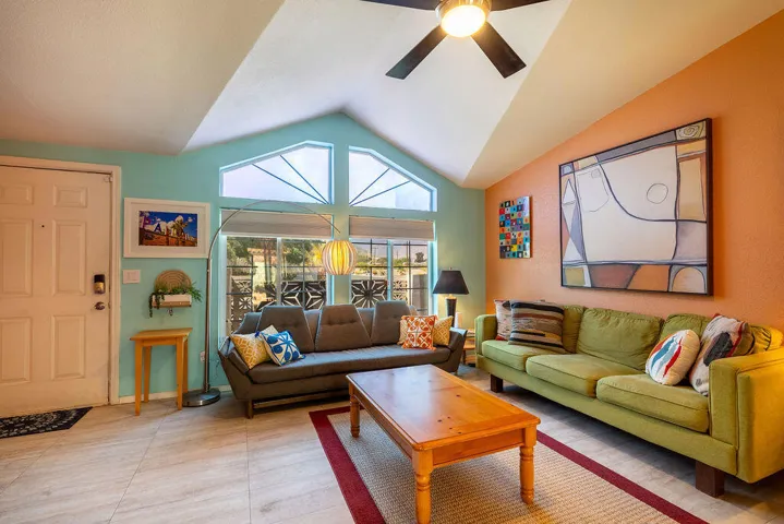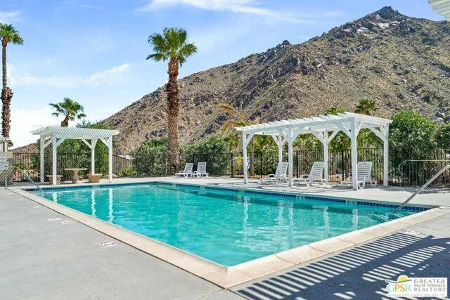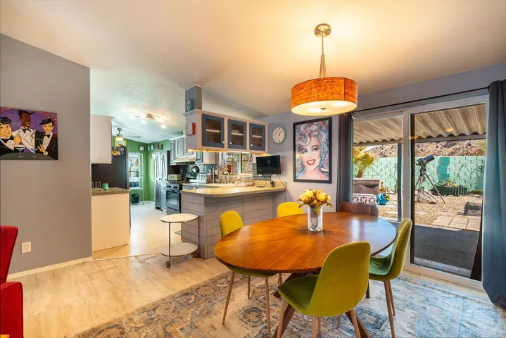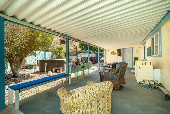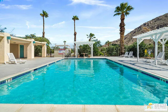 Welcome to this MCM three-bedroom, two-bathroom home located in the peaceful and quaint community of Sun Canyon Estates, nestled on the north end of Palm Springs. Situated on one of the premier lots in the community with no neighbors behind you, this property offers an oversized backyard with breathtaking mountain views, providing a sense of tranquility and privacy. Stepping out to your private patio, you will immerse yourself in the beauty of the spectacular mountains surrounding the property. Whether you choose to relax around the fire pit or simply enjoy the expansive views, this home offers the perfect space for outdoor living and entertaining. Inside, you’ll find a light and bright atmosphere, complemented by the pride of ownership evident throughout. The property features a newer HVAC and water heater installed in 2021, ensuring comfort and efficiency. The newer washer and dryer, dishwasher, and refrigerator add a touch of modern convenience to the well-appointed kitchen. With nearly 1,300 square feet of thoughtfully designed living space, this home offers functionality without any wasted areas. Additionally, an enclosed room with a window and its a/c provides versatility, extra storage, and room for guests, office, or den. Sun Canyon Estates offers an array of amenities, including a clubhouse with a full kitchen, exercise room, billiards, lounge, gathering area, pool, spa, and a playground for the little ones. PLEASE DO NOT DISTURB OCCUPANTS