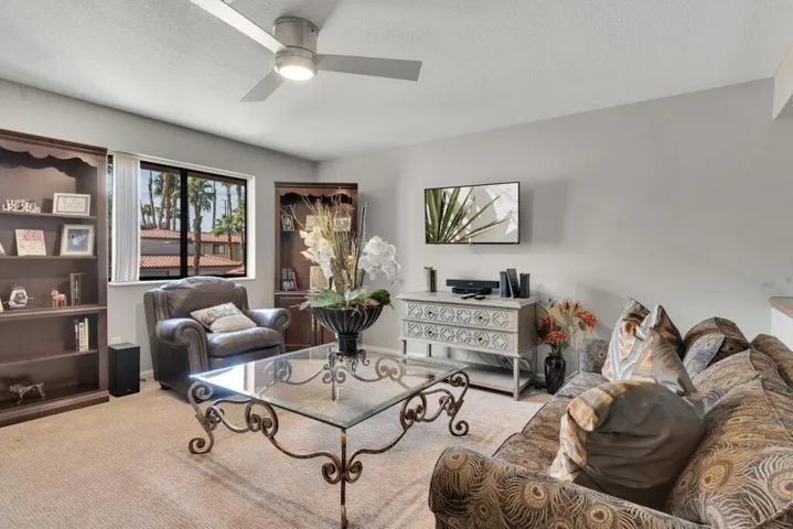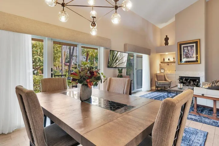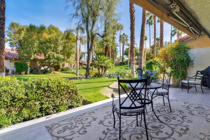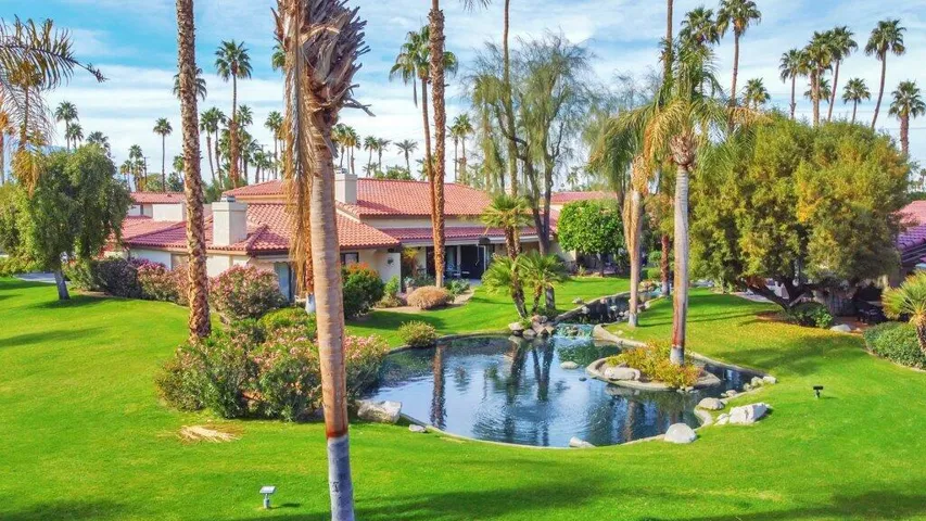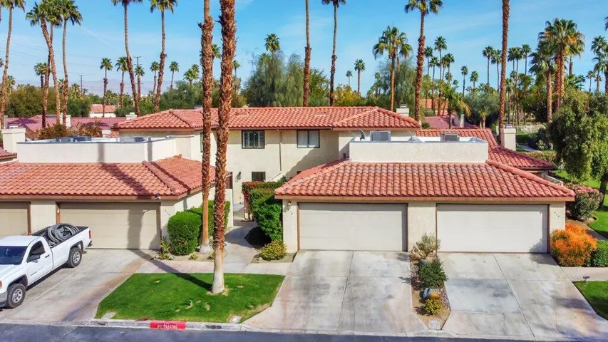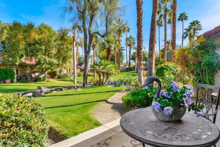 Serene Desert Retreat in Park Palms! Step into this charming Palm Desert oasis, where the tranquil ambiance of Park Palms welcomes you with lush landscaping, swaying palms, and vibrant bougainvillea. This well-maintained two-bedroom, two-bath condo offers a thoughtfully designed layout, perfect for both full-time residents and seasonal visitors looking for a peaceful retreat. As you enter, the two-story ceiling in the living and dining areas create an airy and inviting space, bathed in natural light. The living room’s cozy fireplace adds warmth and charm, while sliding doors lead to a spacious east-facing patio overlooking a meandering stream–a serene setting to enjoy your morning coffee. The main-floor primary suite offers privacy and convenience, with an en-suite bath and direct access to the patio. Upstairs, the second suite features a walk-in closet and a dual-access bath, making it a perfect retreat for guests. The loft area provides incredible versatility–ideal as a family room, home office, or even an additional sleeping space. Located at the end of the street, just steps from the main pool–simply walk out from the back of the condo. Beyond the home itself, Park Palms offers resort-style amenities, including three community pools and spas, a clubhouse with a fitness center and sauna, tennis and pickleball courts, and a charming putting green. The gated courtyard entrance and two-car garage provide added privacy and convenience. Located in a prime Palm Desert location, this home truly embodies desert living at its finest, offering a blend of comfort, natural beauty, and an active lifestyle–all within minutes of top dining, shopping, and golf courses. Come experience it for yourself!