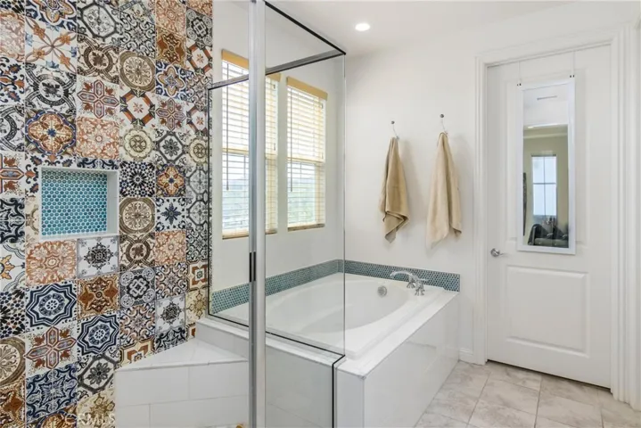The private primary suite is a haven of luxury, featuring a vast walk-in closet and a spa-inspired en-suite bathroom with dual vanities, a sumptuous soaking tub, and a sleek glass-enclosed shower. Rich Mediterranean hardwood flooring flows throughout, infusing the home with timeless warmth and elegance. A thoughtfully designed first-floor bedroom with an adjacent full bath ensures comfort for guests or multi-generational living.
