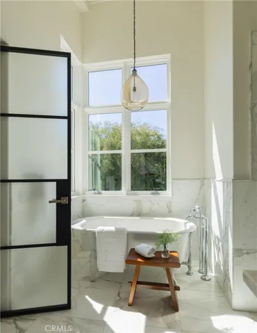 Welcome to 2217 Laurel Place —a bespoke architectural gem tucked away on a quiet cul-de-sac in coveted Newport Heights. Inspired by the clean lines and warmth of a Swedish coastal retreat, this one-of-a-kind home (“Hem” in Swedish) was designed to honor the natural elements. Built thoughtfully with sustainable, zero waste construction and careful selections throughout, the striking vertical lines, a bold asymmetrical roof, and clerestory windows form a sculptural silhouette dramatic yet harmonious flooding interiors with natural light while celebrating the outdoor spaces. Inside, the vaulted living room makes a statement with tongue-and-groove ceilings, exposed beams, and a central fireplace flanked by inset French doors. Reclaimed wood floors flow through to the dedicated dining space, chef’s kitchen and wrap-around bar all connected by oversized sliding glass pocket doors opening onto the lush, inviting yard. The kitchen is a study of form and function featuring natural soapstone countertops, Wolf range, Sub-Zero refrigerator, dual farmhouse sinks, walk-in pantry, and a custom, hand-sourced light fixture. Outside, the mature trees and garden provide a beautiful private backdrop for enjoying the perfect Newport Beach climate. The covered patio with built-in BBQ and adjacent fire pit area creates a setting perfect for gathering, lounging and celebrating under the stars. Upstairs, two bedrooms (one with a balcony) feature walk-in closets and a Jack-and-Jill bath, while a third bedroom enjoys a private en-suite. A cozy loft nook provides space for reading or play. The primary suite is a serene retreat with oversized windows framing treetop views, a massive walk-in closet, and a freshly redone spa-style bath wrapped in calacatta gold marble tile complete with a luxurious shower and freestanding soaking tub.A versatile detached casita sits at the corner of the property, complete with vaulted ceilings, floor-to-ceiling windows, and a full bath; ideal for a guest suite, home office, gym, teen lounge, or creative studio. Dual access from Holly Lane and Laurel Place gives the home two distinct fronts and easier passage to both Irvine Ave & Tustin Ave.The back gate on Holly Lane that leads to the casita and private yard masquerades as a front door while the oversized garage offers space for vehicles, a gym, workbench, and storage. 2217 Laurel Place isn’t just a home — it’s a “Hem” and conscious choice in design and lifestyle.