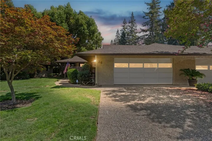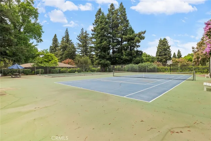 Live amongst the trees in beautiful Northwood Commons, Chico’s most desirable condominium communities. This home features a spacious living room with vaulted beam ceilings, cozy brick fireplace, sky lights and large windows that bring the outdoors in. This 2 bed 2 bath home boasts a living room and primary bedroom that are both generously sized, offering a comfortable and open feel. Enjoy resort style amenities including a pool, spa, clubhouse, tennis court, and bocce ball court, all covered by your HOA dues. The HOA also takes care of roof maintenance, yard landscaping, garbage, water, and shared septic, making for easy, simplified living.
