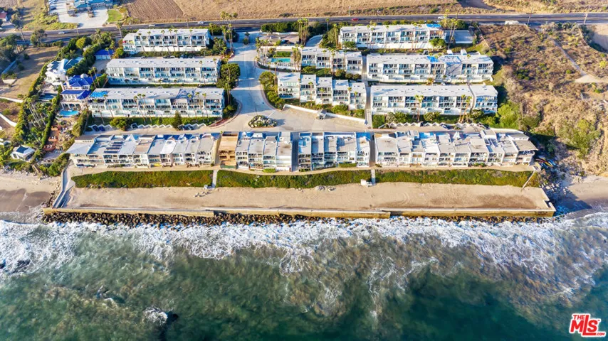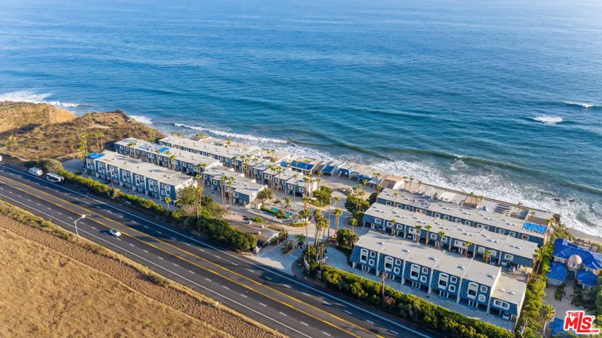 The most fantastic beach retreat! It’s a corner unit with double ocean views. This one-bedroom charmer is a high-end remodeled condo featuring the highest quality finishes, fixtures and appliances. The gourmet kitchen features a Smeg refrigerator, a Big Chill oven and Big Chill induction cook top. The Carrera marble countertops, custom cabinets and Waterworks faucet complete the chic look. The floors are a beautiful hardwood, and they run throughout the living room, bedroom, and office space. The two bathrooms feature Restoration Hardware faucets on showers and sinks. They also include fan-heater units by Panasonic. In addition they are both equipped with wonderful designer floor tiles. The sliding glass doors leading to the two decks are also new, both upstairs and downstairs. There is also a newer washing machine. Luxuriate on the deck to the sounds and sight of the magnificent ocean. The beach is just a stone’s throw away–enjoy it in style in your own vacation paradise. The sounds of the waves and the smell of the ocean are both included! Now is the time to come to Malibu!