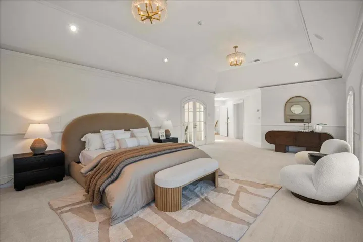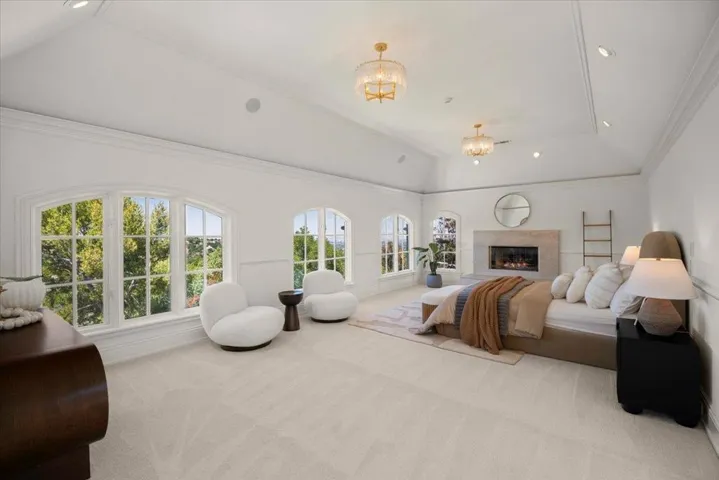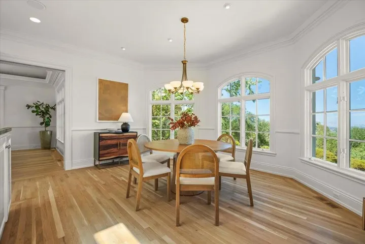 Situated at the end of a private cul-de-sac, this gated Saratoga estate offers panoramic Bay and vineyard views with rare privacy. This estate features custom millwork, artisan glass, multiple guest suites, a home office, music room, and expansive terraces. The light-filled lower level functions as a second living quarter or entertainment space, complete with French doors to a view terrace, theatre, gym, game room, guest room, kitchenette, full bath, and half bath, ideal for extended family or guests. Resort-style grounds include a pool and multiple terraces with space for gardens, a cabana, or vineyard. Parking for 10+ cars behind a gated entry. Just minutes to shopping, dining, and local wineries, and approx. 10 minutes to Highway 85. A rare private Saratoga retreat at the summit of Silicon Valley.