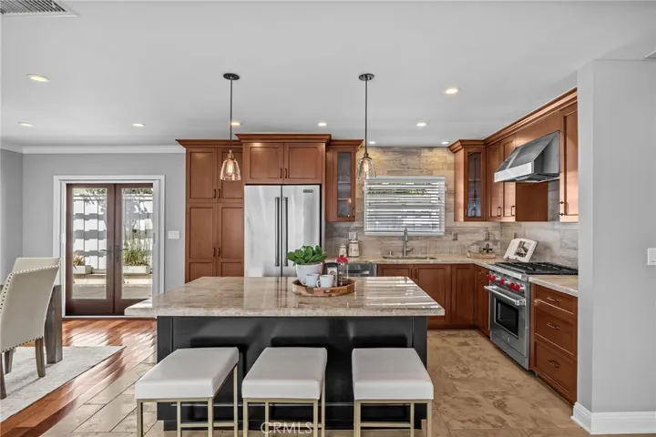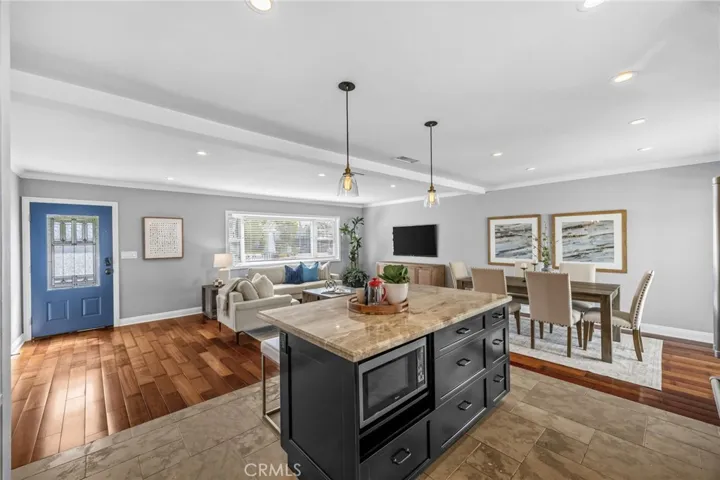 Welcome to this beautifully upgraded 2-bedroom, 2-bathroom single-level home, ideally situated on one of the few cul-de-sacs in Eastside Costa Mesa. Fully remodeled and thoughtfully designed, this home blends modern comfort with timeless craftsmanship. Step inside to find open-concept living, kitchen, and dining rooms that create a light-filled, inviting space… perfect for both everyday living and entertaining. The kitchen is a chef’s dream, featuring a professional-grade Wolf range and oven, a top-of-the-line KitchenAid refrigerator, and ample counter space. Stunning custom woodworking throughout, from built-in cabinetry to detailed wood paneling, adds warmth and character to every room. The expansive primary suite offers vaulted ceilings with exposed beams, custom closets, and a spa-like bathroom complete with a glass-block shower, rain shower-head, full-sized Jacuzzi tub, marble countertops, and limestone tile. The second bedroom includes a charming bay window and custom shelving, making it ideal for guests or a home office. Modern upgrades include central air conditioning, a tankless water heater for instant hot water, and a convenient covered side area that’s perfect for a workshop, extra storage, or even additional parking. Surrounded by lush gardens and framed by a classic white picket fence, this private and peaceful property offers a rare opportunity to own a truly special home in one of Costa Mesa’s most desirable neighborhoods.