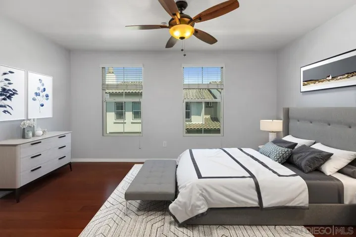 Location & a fabulous unit too! Beautiful 3 bed, 3.5 bath unfurnished condo in the heart of Agave in Windingwalk. So close to the pool, yet far enough away to be quiet & peaceful. Great community, so many amenities. Centrally located to so much in Chula Vista. 3 stories: living areas, balcony, laundry rm & 1/2 bath on 2nd flr. 1 bedroom on 1st flr, 2 bedrooms on 3rd flr. Each has it’s own bathroom. Hdwood flrs w/tile in the bathrooms. Lg, kitchen w/granite counters & a big island. 2 car gar, AC, fans in bedrooms & living/dining area. SS kitchen appliances. Lots of storage. Photos virtually staged. Priced to sell!