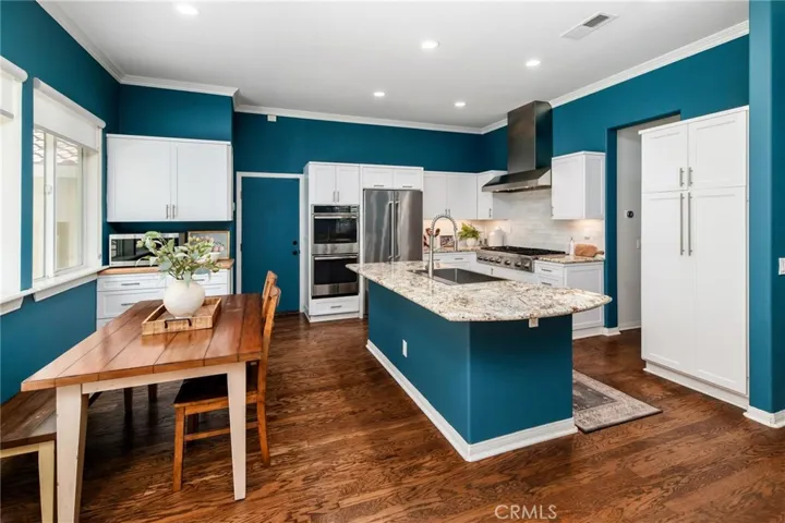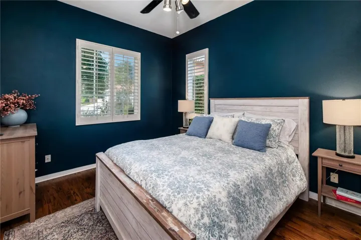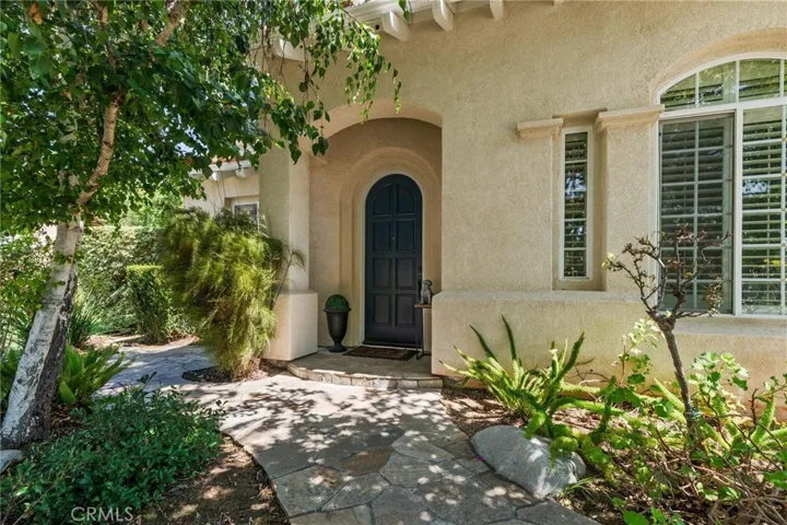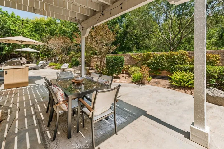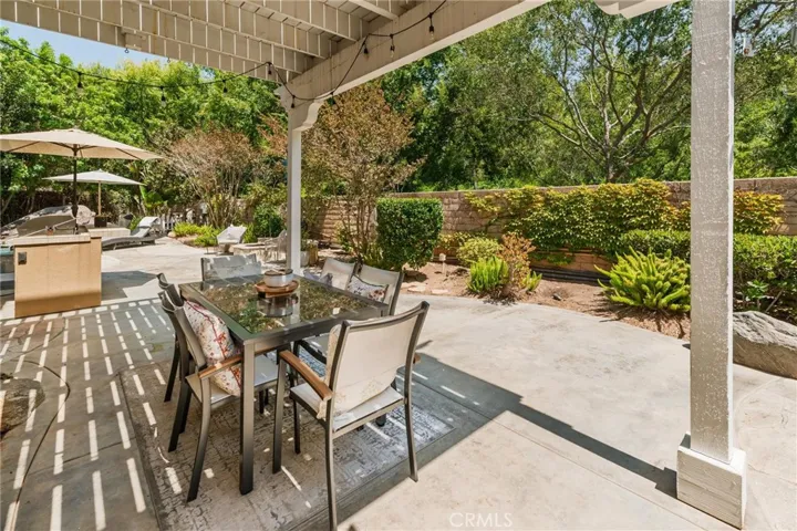 Located at the end of the cul-de-sac on the best street, with lush landscaping and privacy on a large lot , this home has it all! A remodeled gourmet kitchen featuring a 6 burner Thermador range with griddle and hood, undercabinet lighting, pull out drawers in the pantry, granite counter tops, stainless steel sink, double oven, and Kitchen Aid refrig. An adjoining alcove with a coffee station and wine bar add an unexpected and convenient feature for entertaining. The dining room opens up to the outside with French doors allowing for an alfresco feel. This home is great for families or retirees having a downstairs bedroom and full bath. The combination of plantation shutters, hardwood and stone floors and high vaulted ceilings give a warm open feel. The cozy living room has a fireplace and is great for reading and fireside chats. The kitchen opens into the family room as a great room and has the 2nd fireplace and surround sound. From there the sliding glass door opens on to the outside entertaining area, with a built-in BBQ with new burners, a sit-up bar, covered dining area and plenty of seating and lounging near the pool and firepit. The saline pool and jacuzzi have a gorgeous waterfall with a new pump, cholinator and heater. Upstairs the primary suite is large enough to have the 3rd fireplace and seating area and opens to a private covered deck. The suite has an upgraded bath with stone countertops, a walk-in shower and soaking tub, and a built-in closet .Two additional bedrooms upstairs plus an office/den and library nook provide all the space you’ll need for entertaining family and friends. A new $12,000 air conditioning system with a state-of-the-art Nest is app controlled. Tree lined streets are perfect for an evening walk to the community park. The oversized 3 car garage has built-ins with pleny of storage and workspace. Additional features include; an automated irrigation system,whole house interior fan for cooling without air conditioning, a Ring alarm system with cameras and a whole house water softener. This is an amazing house and will not last!