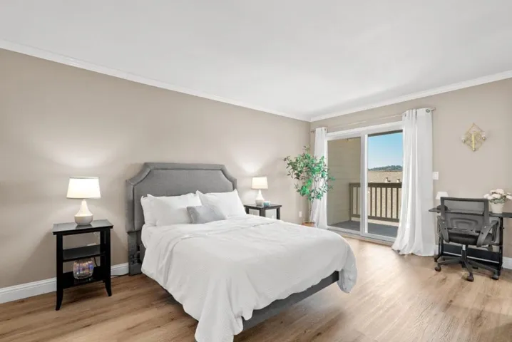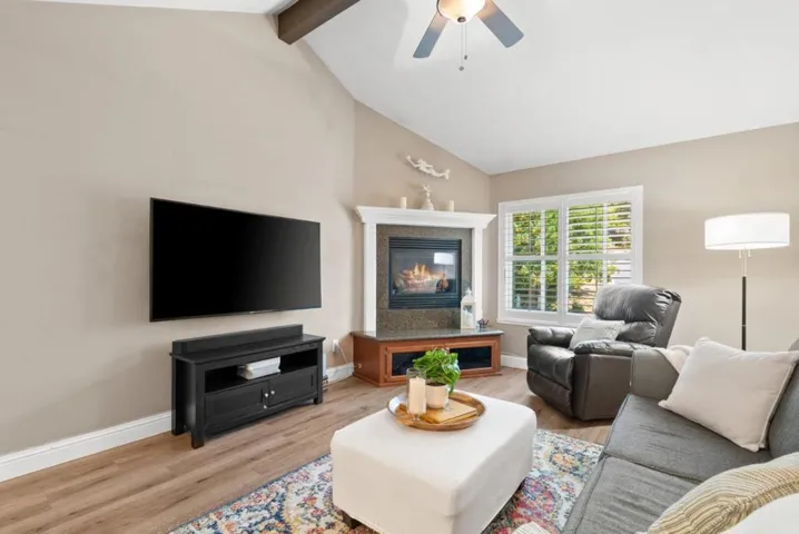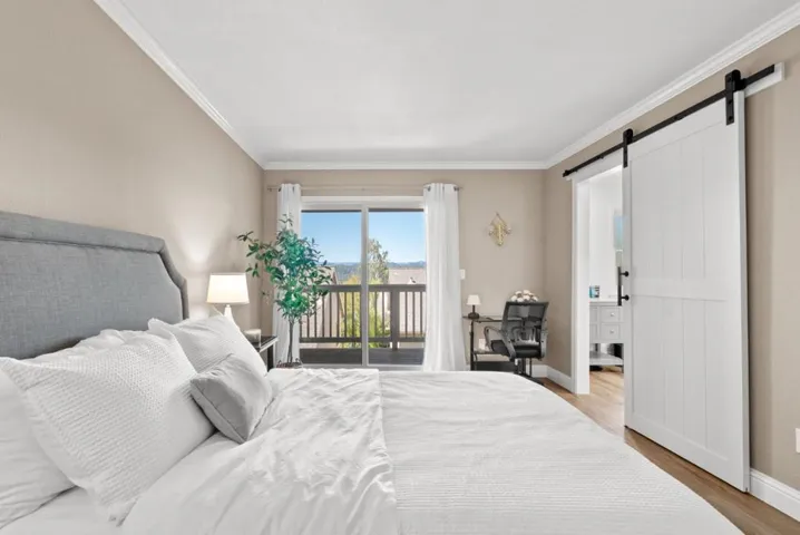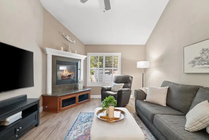 Perched at the top of Scottsborough, this beautifully upgraded 2BR/2BA end-unit townhome offers sweeping valley and mountain views, serene privacy, and a coveted Scotts Valley location. The living room features high ceilings and a cozy gas fireplace, while the contemporary kitchen boasts granite counters, stainless steel appliances, and a new disposal. Notable upgrades include a new garage door and opener, water heater, vinyl flooring, Anderson windows with shutters, a Culligan water softener, and fresh paint in the upstairs en suite. Each bedroom enjoys its own private deck to take in the scenery, and the downstairs bathroom has been completely remodeled to feature a large soaking tub. With a two-story floor plan, balconies on both levels, and a prime location at the end of the community with minimal traffic, this home blends comfort and convenience. Just steps from the community pool and extra guest parking, you’re minutes from parks, trails, boutique shopping, dining, and top-rated Scotts Valley schools. Easy access to Hwy 17 means you’re only a short drive to Santa Cruz beaches and Silicon Valley.