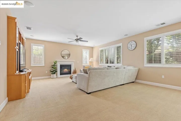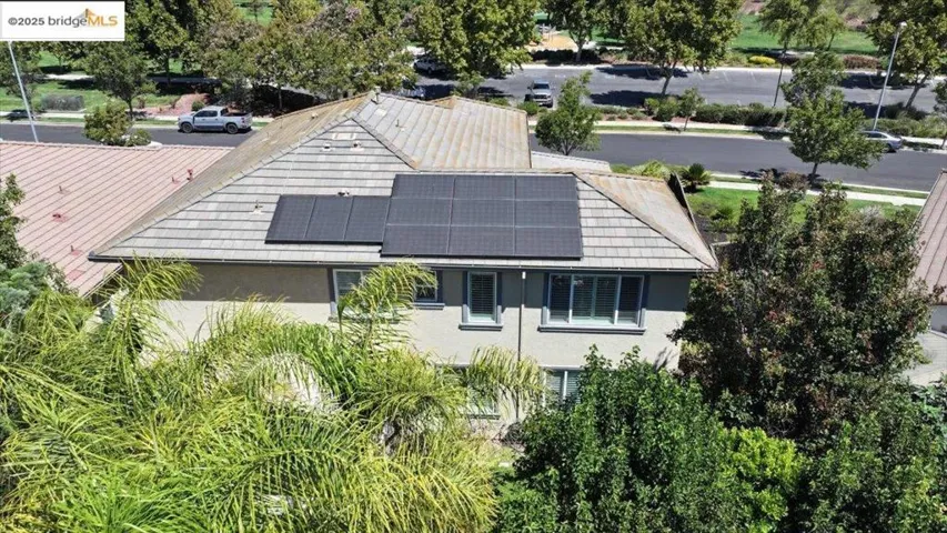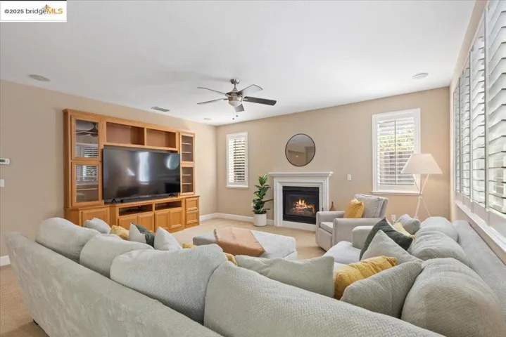 WOW! This home offers everything that you would want in a home including a large front porch for summer nights sipping lemonade and relaxing. There is an office/den located off the front porch with it’s own french doors entrance. When you walk in the front door, you are welcomed to a warm home feeling that features a separate dining room for gatherings, large family room that is open to the chefs kitchen that has a huge island and plenty of counter space. There is a bedroom and full bathroom downstairs for multi generational living space. Walk upstairs and see a loft that you can use for a separate gathering area or game room. The primary bedroom is large enough to let your imagination run wild with ideas for decorating ideas. Features a large walk in closet that will hold all those outfits you desire. The rooms are large enough so that nobody has to fight over what room they get. Save on your PG& E Bill with FULLY PAID OFF SOLAR & Back up Battery! All of this and it’s located close to the club house featuring a built in pool and across the street from a large park so that you can take your animals for a walk or just use for large gatherings. Don’t miss your opportunity to own a home that has everything your looking for.
