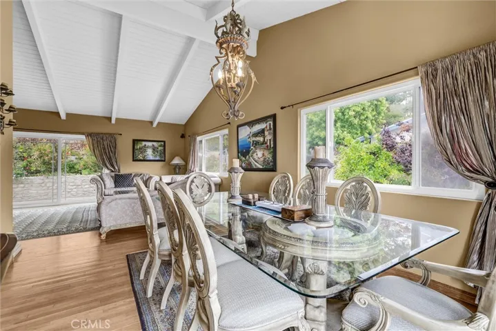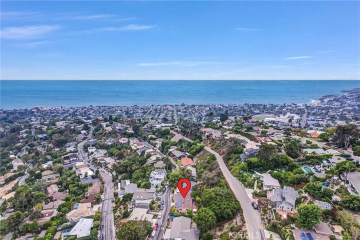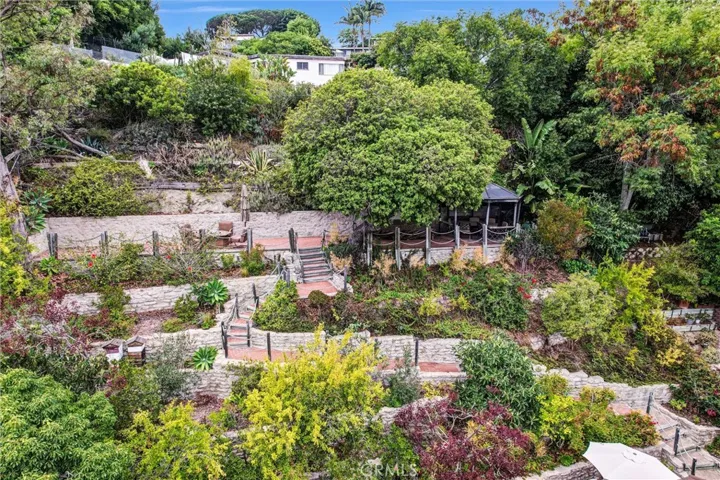 Set above the Village in Temple Hills, this ocean-view residence blends dramatic indoor/outdoor living with the ease of single-level spaces. A vaulted, open-beam great room anchored by a carved fireplace opens to a front deck boasting stunning ocean and hill views. The elegant kitchen adjoins the dining area and living room for effortless entertaining. Three bedrooms and two baths include a view primary suite with sitting area/retreat and a primary bathroom with featuring dual vanities, walk-in shower and soaking tub overlooking the hills. Outdoors, a private paver courtyard hosts a built-in BBQ and island with sink; brick pathways climb the terraced .24-acre lot to a hilltop gazebo—multiple places to dine, lounge and take in the scenery. Additional highlights: owned solar, wood floors, washer/dryer and refrigerator included, attached 2-car garage with EV outlet, outdoor storage shed, and no HOA. Enjoy quick access to Laguna’s beaches, galleries, dining and hiking.