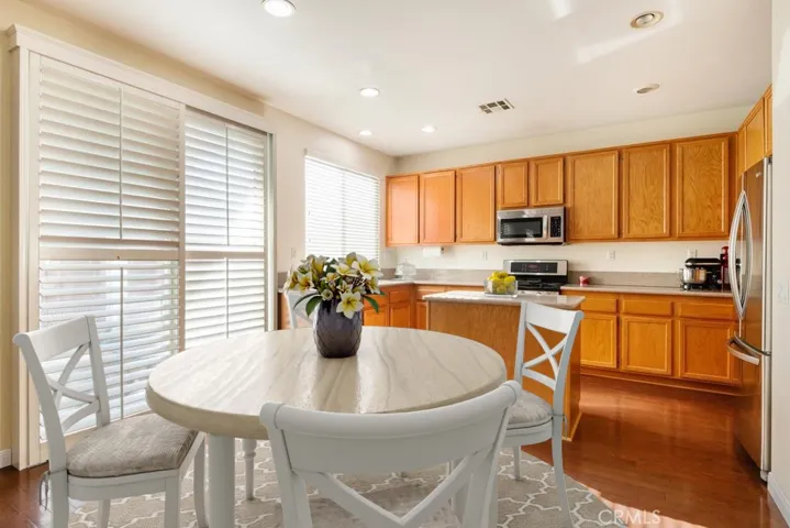 BACK ON MARKET WITH NO FAULT OF THE SELLER OR PROPERTY, VERY MOTIVATED SELLER – Turnkey Rancho Bella Vista Beauty! Gorgeous home in the prestigious Rancho Bella Vista community, in top rated Temecula Valley Unified School District. This versatile floor plan includes a full bathroom downstairs and – per the builder’s optional design – space for a main-level bedroom with direct bath access, ideal for guests, multi-gen living, or a private office. Inside, enjoy tons of natural light warm hardwood flooring, a bright, open-concept family room with a beautiful fireplace, and a kitchen offering generous counter space, abundant cabinetry, and seamless flow to the dining area. Step outside to your private backyard featuring a custom concrete patio, alumawood patio cover, freshly painted fencing, and a large side-yard – perfect for gatherings, gardening, or future expansion. Close to major shopping centers, family parks, and the highly acclaimed Temecula Wine Country.