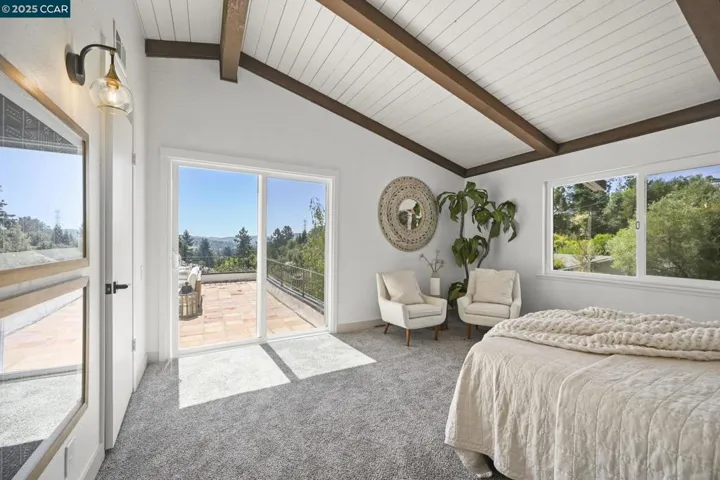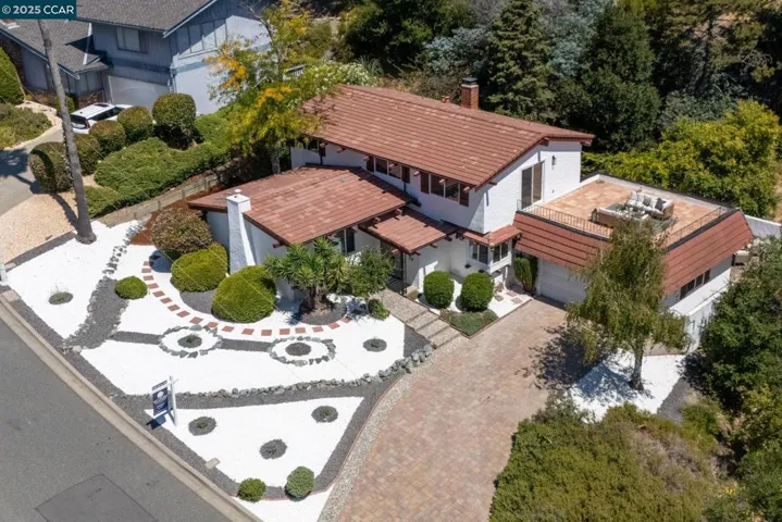 Price Improvement! Spanish-Style Charm in Coveted Moraga Location – Positioned on a peaceful lot near the end of a quiet cul-de-sac, this two-story Spanish-style home offers approximately 2,420 square feet of stylish living on a generous .46± acre parcel. With four bedrooms and three full baths, the residence blends timeless character with modern updates, including a remodeled kitchen with new white cabinetry, gorgeous countertops, stainless steel appliances, subway tile backsplash, new flooring, and LED lighting (August 2025). The kitchen opens seamlessly to the family room and dining area, creating an inviting great-room feel, highlighted by hardwood floors and a wood-burning fireplace. A spacious formal living room with vaulted ceilings offers a separate gathering space, ideal for entertaining. The primary bedroom opens to a large patio with sweeping views of the Moraga hills. Additional highlights include all new windows and sliding doors, an updated primary bathroom, fresh interior paint, new light fixtures, and new carpet (August 2025). Located near Los Perales Elementary and other top-rated schools, the Moraga-Lafayette Trail, Moraga Country Club, and the Sunday Farmer’s Market, this home combines comfort, style, and an unbeatable location.