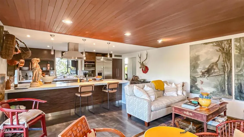 Nestled at the tranquil end of a cul-de-sac, 1344 Marianna in Pasadena blends modern updates with timeless charm. This stunning multi-level home offers ample parking and panoramic views of Johnson Lake. Floor-to-ceiling windows throughout fill the interiors with natural light, including the vaulted, wood-paneled living room with a striking mosaic-tiled fireplace. The dining areas open to a lush patio and tree-filled landscape, blurring the line between indoors and out. The chef’s kitchen, open to a cozy family room, features high-end stainless appliances, a large island, and generous storage. The master suite is on the main floor, while additional bedrooms provide peaceful retreats–one with a private balcony, another with elegant hummingbird art. Updated bathrooms showcase modern fixtures, and a loft overlooking the living room offers an ideal home office or creative space. Designed for both entertaining and quiet relaxation, the home is offered partially to mostly furnished, allowing for a seamless transition. Pristine condition, thoughtful updates, and curated furnishings make this an exceptional Pasadena rental.