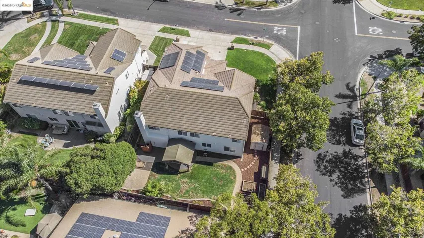 Beautifully updated home on a quiet Oakley cul-de-sac! This stunning property sits on a premium corner lot with no HOA, low property taxes, and owned solar. The exterior features fresh paint, stone pillars, a tile roof, exterior lighting, and a welcoming covered patio. Enjoy landscaped front and back yards with automatic sprinklers, pavilion-covered patio, walkway pavers, stone retaining wall, raised garden bed, and storage shed. Side Possible side yard access is perfect for a boat, bikes, or water toys. Inside boasts an open floor plan with soaring ceilings, new paint, abundant natural light, and engineered hand-scraped hardwood floors. A circular layout and double-sided staircase add elegance and flow. The kitchen offers Corian counters, an island with a breakfast bar, stainless steel appliances, a double oven, subway tile backsplash, and a walk-in pantry. The family room features a gas fireplace with a floor-to-ceiling craftsman mantel. Upstairs includes an extraordinary 5th bedroom with Mt. Diablo views, a loft (optional 6th), and upgraded bathrooms with frameless glass shower, tile, and garden tub. New carpet, dual-zone HVAC system with newer A/C unit, smart thermostats, and laundry cabinetry add comfort. Close to schools, parks, and shopping. Maybe VA Assumble Loan.