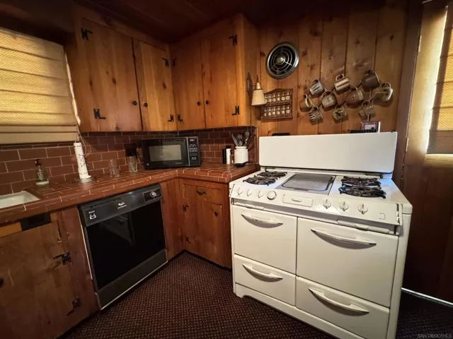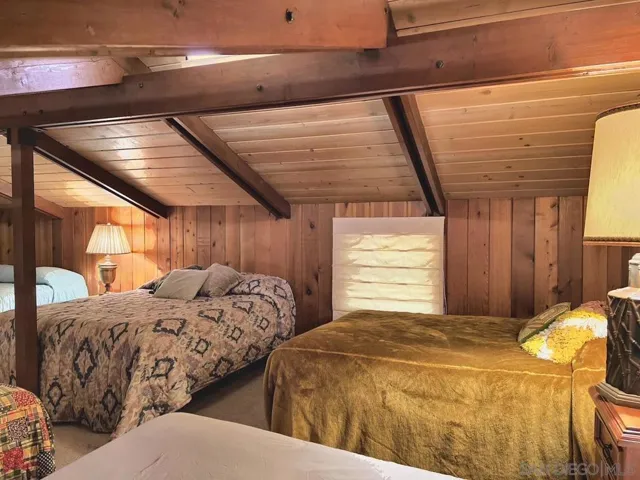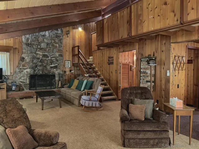 Huge price improvement! Nestled among mature oak and pine trees, this charming two-story cabin on a .52-acre parcel offers timeless mountain living. The centerpiece is a floor-to-ceiling rock fireplace in the living room, complemented by wood beam ceilings and walls that embrace cabin charm. A mini-split system ensures year-round comfort. The kitchen features knotty wood cabinetry, tiled counters, an antique range/oven, and refrigerator. With three bathrooms, a primary suite, and a loft bedroom designed to sleep 10, there’s space for everyone. Relax on the covered front porch, enjoying crisp air and birdsong, or gather around the fireplace after a day outdoors. Room for a garage too! Conveniently accessed off paved Rocky Pass Rd, this retreat is just minutes to town, I-8, and only 45 minutes to downtown San Diego.