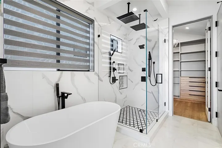 The upper level is a private retreat. The primary suite rests under a vaulted ceiling with a fireplace and a spa inspired bath that feels resort worthy, featuring dual vanities, a separate glass enclosed shower with dual rain heads, a separate soaking tub, a smart toilet, and a built in custom closet designed for seamless organization.